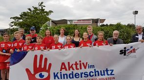 Um die Sichtbarkeit des Themas Kinderschutzes und PSG in überdurchschnittlich engagierten Vereinen zu erhöhen, vergibt die sjsh seit Sommer 2017 "Aktiv im Kinderschutz"-Banner.